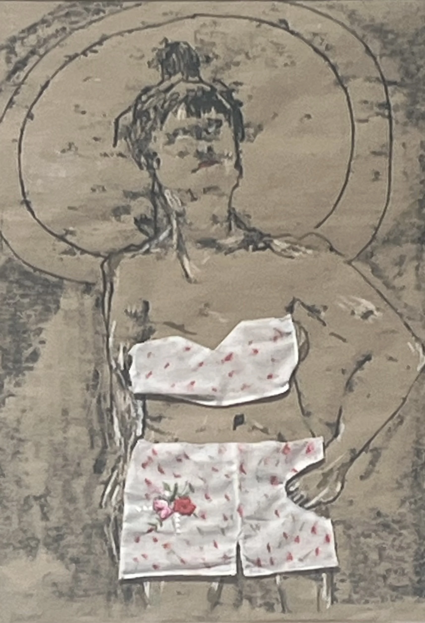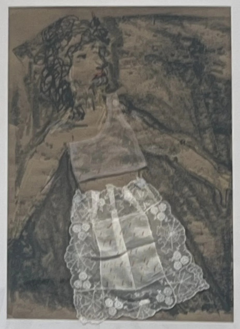 It was after a number of my monoprints were removed from an invited show that the idea came to me to make tiny garments to cover the nudity. Ladies in Frocks was quickly followed by A Touch of Viridian, where the painted clothing added touches of modesty to the works, and the private parts are well hidden.